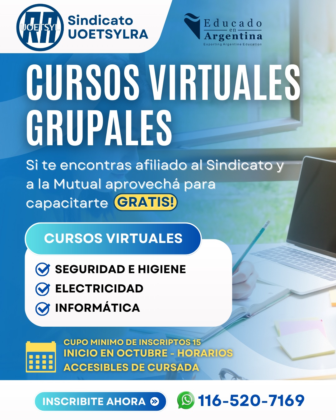 Anotate hoy mismo para estos cursos virtuales: Seguridad e Higiene, Electricidad e Informática